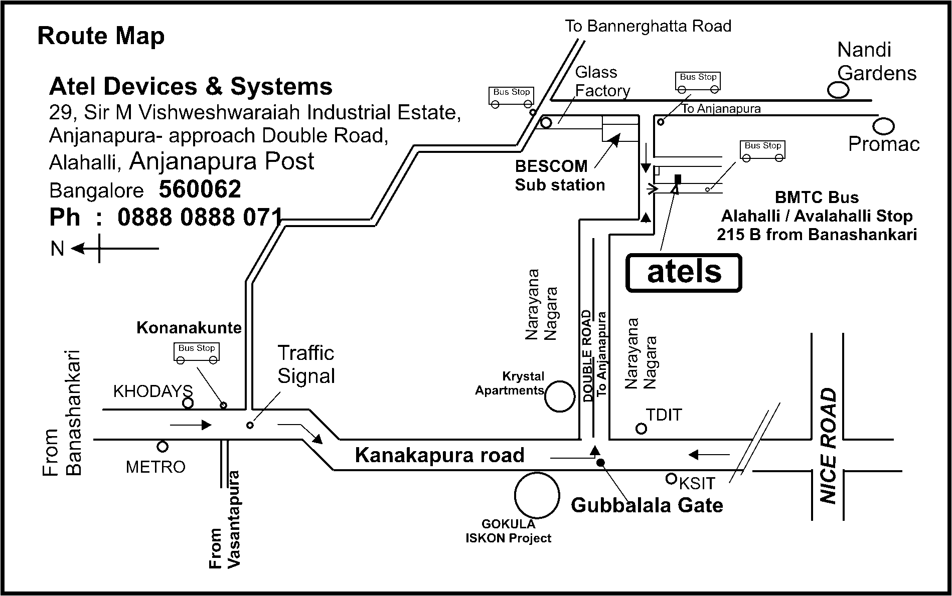 Atel Devices & Systems Correspondence Address 2528, 27th cross, Banashankari 2nd stage, Bangalore 560070 India Ph 0888 0888 071 Email : atels@vsnl.com Web page: www.atels.net Works Address 29,"Ojas', Bharath Ratna Sir.M.Vishweshwariah Industrial Layout , Alahalli, Kanakapura Road, Anjanapura Post, Bangalore 560062 India |
